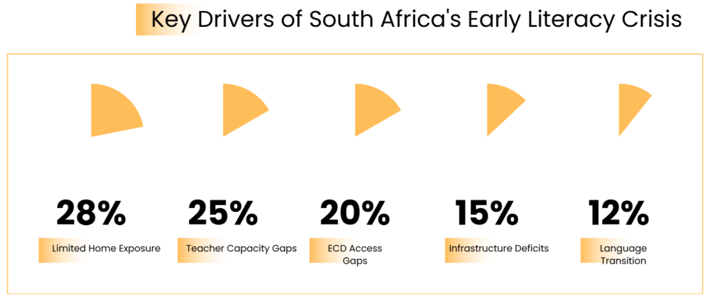 Several structural factors drive this outcome. Many learners begin school without prior exposure to books, storytelling, or early literacy stimulation at home. In disadvantaged communities, access to early childhood development programmes and reading materials is often severely limited.